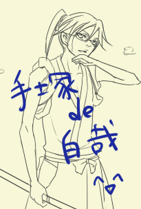 脳みそが沸いてテンションが異常に上がると、こんなものを描きたくなるようです。これを紙に落書してたときも、「生!生クリームフヒヒww」「ミサミサ椅子ktkr!!拘束具ハァハァww」ってな具合でした。人間やめますか!!